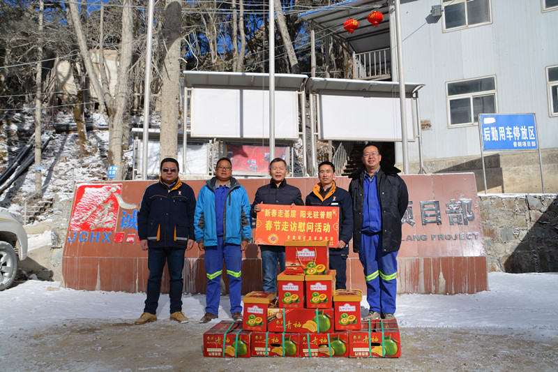 9点,明媚的阳光洒满大地,在这喜庆的时刻,云南迪庆有色金属有限责任公司慰问团到访项目部,为项目部员工带来了节日的问候。业主方慰问团与项目部领导进行了融洽的交谈,表达了对普朗项目部过去一年努力所取得成绩的肯定和祝贺,对今年的工作提出了希望和要求。项目部领导表示新年会在公司二次创业的大潮中奋勇前行,圆满完成各项任务。