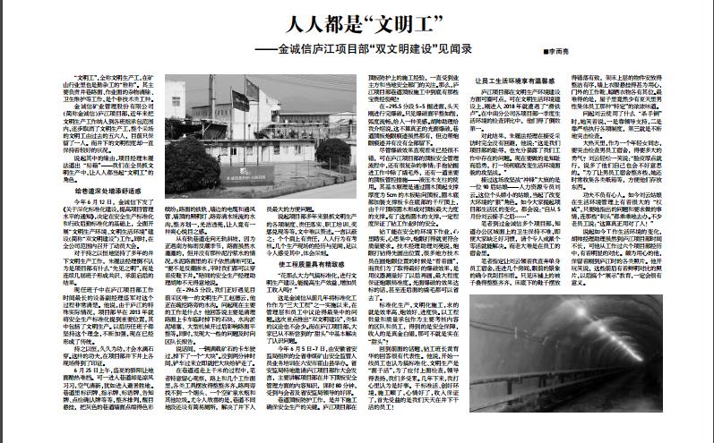 说起其中的缘由,项目经理朱履法道出“秘籍”——我们在全员抓文明生产中,让人人都当起“文明工”的角色。