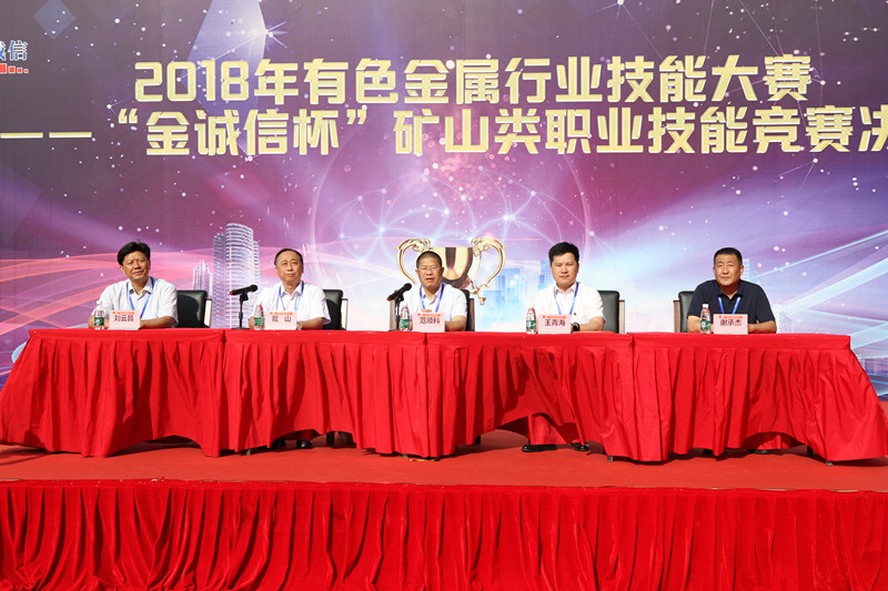当天上午在主席台上就坐的领导有:中国有色金属工业协会党委副书记范顺科,金诚信矿业管理股份有限公司副董事长王青海,中国有色金属工业协会副秘书长、组织人事部主任戴山,有色金属工业人才中心、有色金属行业职业技能鉴定指导中心主任谢承杰。