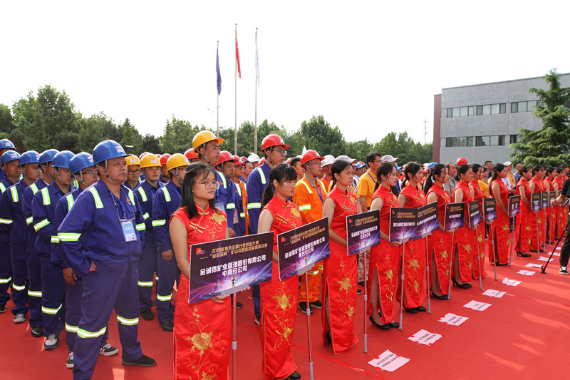 作为主会场的金诚信密云基地,当天上午彩旗招展,条幅迎风,乐曲奔放,群情激昂。上午8时30分,15支参赛队伍在引导员带领下迈着矫健的步伐依次走进会场。会场播音员用铿锵有力的声音逐一介绍每支队伍所代表企业的骄人业绩,让每个选手脸上绽放着满满的自豪感,精神抖擞地接受主席台上领导的检阅。