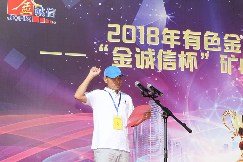 领导讲话后,竞赛选手和裁判员代表分别进行了宣誓。中国有色金属工业协会党委副书记范顺科宣布:2018年有色金属行业技能大赛——“金诚信杯”矿山类职业技能竞赛正式开始!