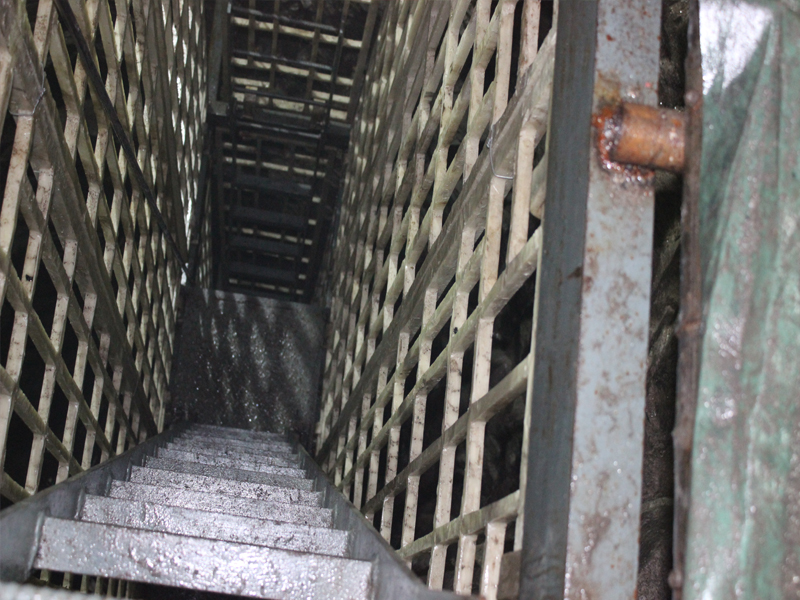 9月25日,一切工作准备就绪,正式开始了安装工程的施工。在施工开始后才发现,施工难度远比预期的要大:需要安装修复的梯子间在1400中段以上20多米和以下10多米的位置,空间小,上下都够不着,而且井筒的水量非常大。虽然在井壁上方作了防水棚,但过大的水量还是对施工造成很大影响。