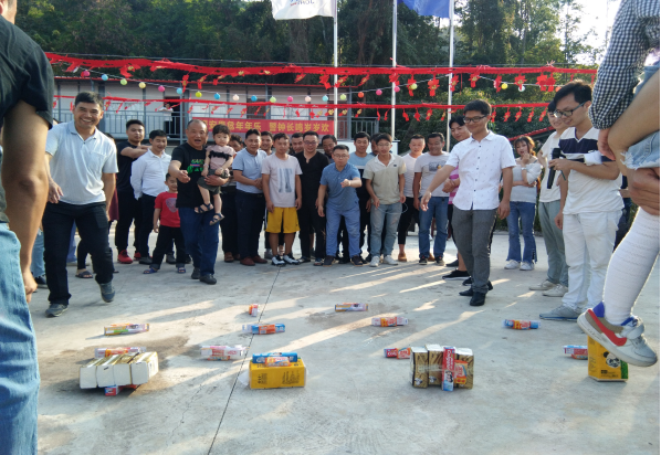 下午四点,项目部院内热闹非凡,“迎新春”拔河比赛开始,为即将到来的新春佳节增添了浓烈的喜庆色彩。 接下来是“面粉接力”,参赛选手分为两个队,每队由4名成员组成,每个人嘴里叼着一张扑克牌,由第一名用扑克牌将面粉传递到最后一名选手的扑克牌上,最后一名将面粉倒在盘子里,盘子里面粉多的为胜。