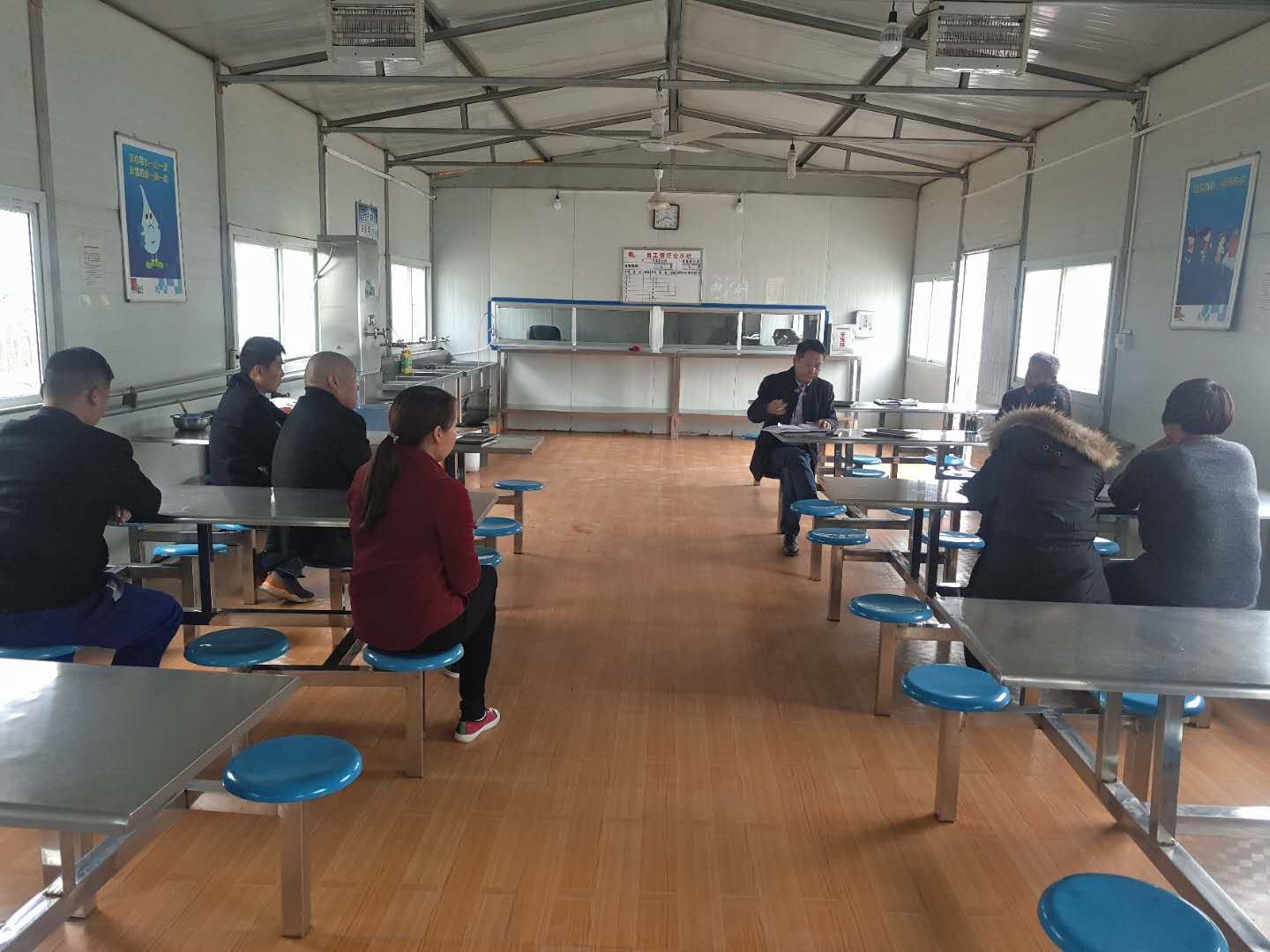 仲春四月,暖风沁人。为进一步提高项目部食堂饭菜质量及食堂内部人员的创新综合素质,4月19日下午,会宝岭项目部召开了后勤食堂工作动员会。参会人员有项目经理翟武弟、综合办公室副主任杜连志、综合办公室行政主管王晓妹、经营财务室预算员武文治及食堂全体人员。