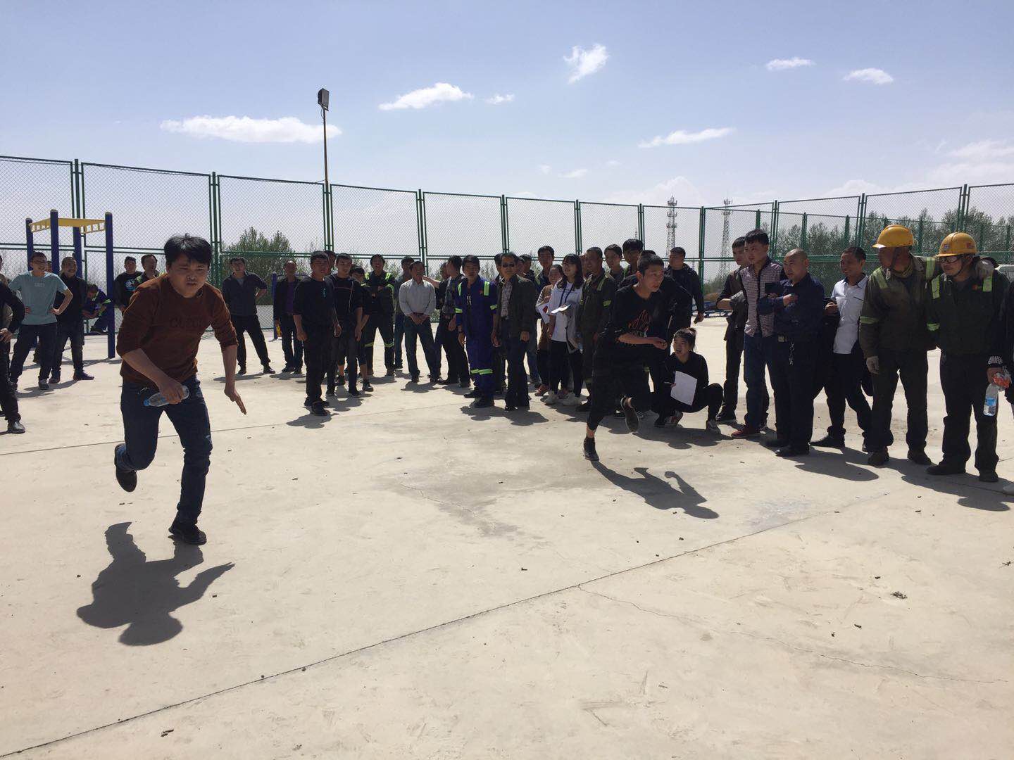下午2时,竞赛活动移师户外篮球场进行。首先是女子跳绳比赛,细细的跳绳在美丽的女员工手中和脚下飞速旋转出道道美丽的弧线,速度和数量取上,综合办公室谭小丽、竖井工区胡园林、员工家属程静娴以前三名胜出;篮球定点投篮,考验选手们的投球的精准度和速度,最终基建工区张永明、维修工区何荣肖、竖井工区宋自强以投球数量取上分获前三名。接力赛跑,在对选手的体能和速度是一个严峻的考验。这是团队和速度的角逐,这是年轻人的赛场,最终管理技术队、充填工区队、维修工区队分别获得第一、二、三名;拔河比赛,一如既往是每次趣味竞赛活动的压轴大戏,项目经理陈体新亲自督战,观赛人员的呐喊声助威声犹如选手较上了劲儿。经过激励的争夺,采矿工区队勇夺拔河比赛第一名,维修工区队、采切工区队分获二、三名。