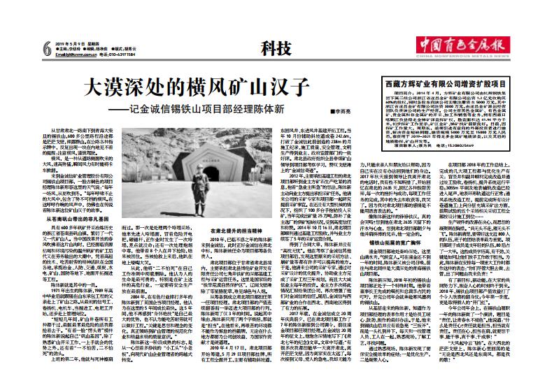 2010年,已临不惑之年的陈体新来到金诚信。此时正值金诚信在肃北中标,陈体新被任命为项目部筹备负责人。