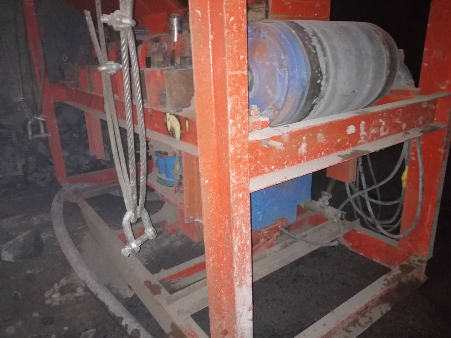 受金川地区采矿施工工艺影响,项目部乃至业主方在采出矿效率提升方面一直存在较大难度。其中在打眼放炮、出矿运输、支护喷浆、整体充填的工序循环中,支护喷浆工作占据了较大的劳力、时间比重。因此,成立专业喷浆班组是提升整体采矿效率的有效途径。这次投入使用的自动喷浆机组主体,由一台干式喷浆机、两套皮带传送机构、一个可扩展混合料仓、一个速凝剂投料仓及电控系统构成,较金川项目部早期改造投用的喷浆车,解决了送料需人工辅助、螺杆输送机易卡滞等问题。