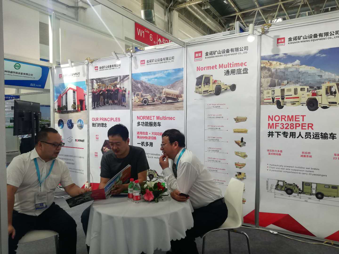 金诺公司此次参展由总经理孙林带队,新加入的销售总监金锡古第一时间赶到北京展会助阵现场。金诺公司在此次展览会主要推广Normet Multimec MF100J/SF060J 多功能服务车系列和Normet MF328PER 井下专用人员运输车。