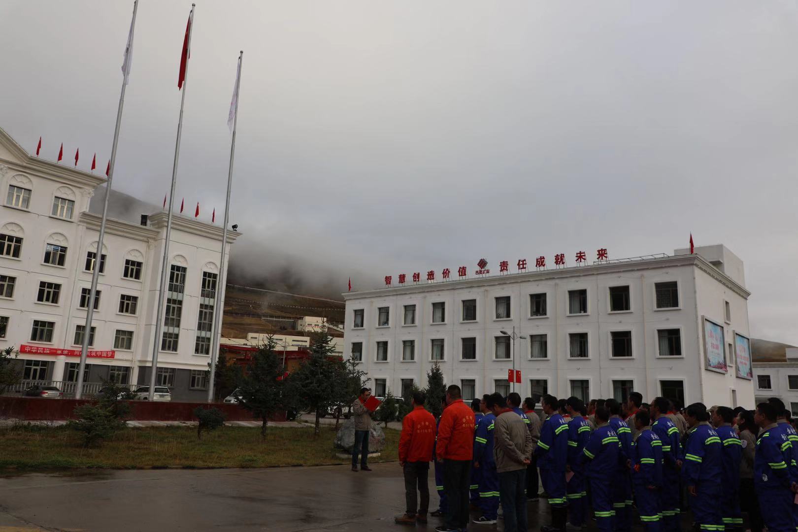 国庆节清晨,冉冉朝阳跃出波澜壮阔的云雾,照进川西高原崇山峻岭中。白玉矿山上的矿工们早早集合在一起,迎接祖国生日的到来。早上8点,我项目部员工与业主方及陕西银心矿业员工齐聚四川鑫源矿业的升旗台边上。伴随着庄严雄壮的国歌声,大家庄重注视着国旗冉冉升起。随后,大家欢快共唱《我和我的祖国》,为祖国母亲庆生。此时此刻,回荡在我们心中的,是高原儿女对祖国母亲的无限热爱之情。