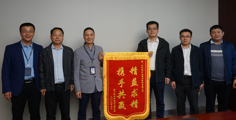 股份公司副总裁兼总经济师王慈成在接过锦旗后,向临沂会宝岭铁矿有限公司的领导们表达了诚挚谢意。王慈成副总裁说,会宝岭项目部取得的成绩,离不开业主方的大力支持与理解。金诚信将继续秉持客户至尊的核心价值观,认真落实业主要求,坚定决心信心,长期不懈地持续推进安全生产标准化工作,与业主方共同创造新的佳绩。王慈成副总裁还强调,我们要学习业主方在安全、质量、充填管理等方面的好做法和经验,更快更好地完成生产计划。