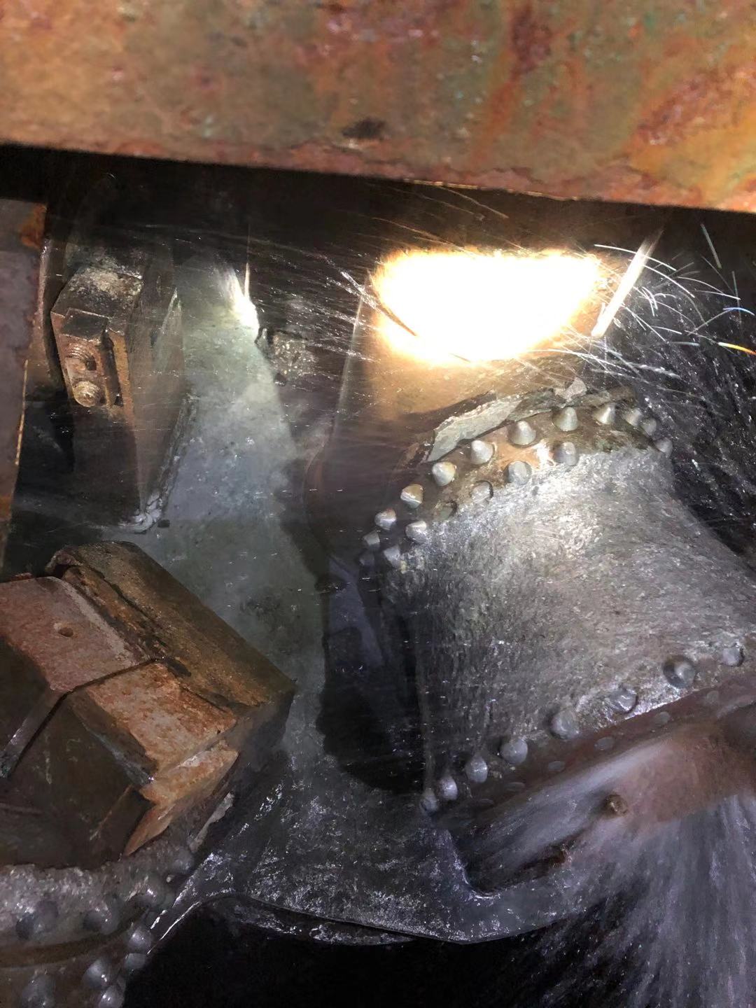 2019年,反井项目部在内部工程稳步施工的同时,下半年开始外部工程也逐渐拓展扩大,迎接的挑战也越来越多。其中反井沂南工程西山矿区7中段至9中段风井,井深82.5m,扩孔直径1.4m,倾角90°.由于沂南金矿施工条件较差,岩石较硬,受运输罐笼限制,遏制了前期施工进度。