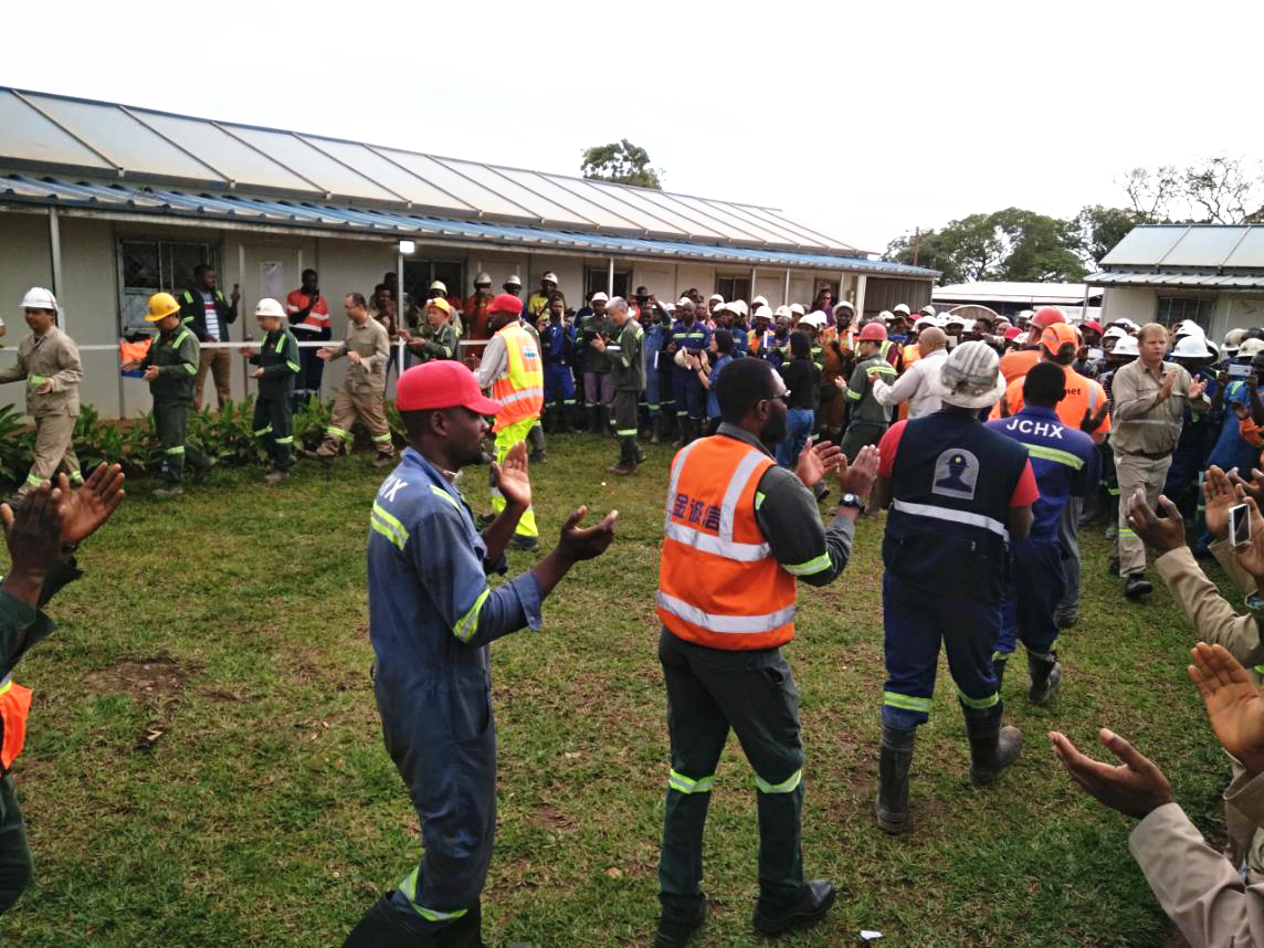 活动最后,业主管理层、项目公司管理层与员工代表们围成一个圆圈,全体人员一起拍手打节奏,合唱业主矿歌“Jambo Jambo”。歌中唱到:“我们是卡莫阿团队,名列第一的团队,我们努力工作,我们安全工作,我关心安全!”。歌词简单明了,节奏感强,合唱歌曲很快将安全周会议推向了高潮。