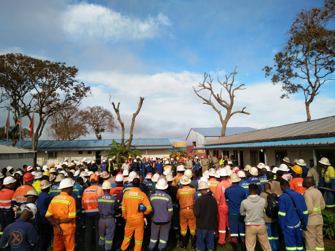 每次周安全会议都会确定不一样的安全活动主题。如非洲的雨季已来临,井下水治理和地面防雷又带来了新的挑战,无疑成为了本周安全主题之一;劳保用品规范穿戴,自救器佩戴不能掉以轻心,作业前仔细撬毛,维修人员上锁制度等等。矿山经理、项目经理一遍遍、一项项地提醒各种肤色的矿山员工,英语、斯瓦西里语、汉语三种语言相继“吆喝”,传来大家会心的笑声。