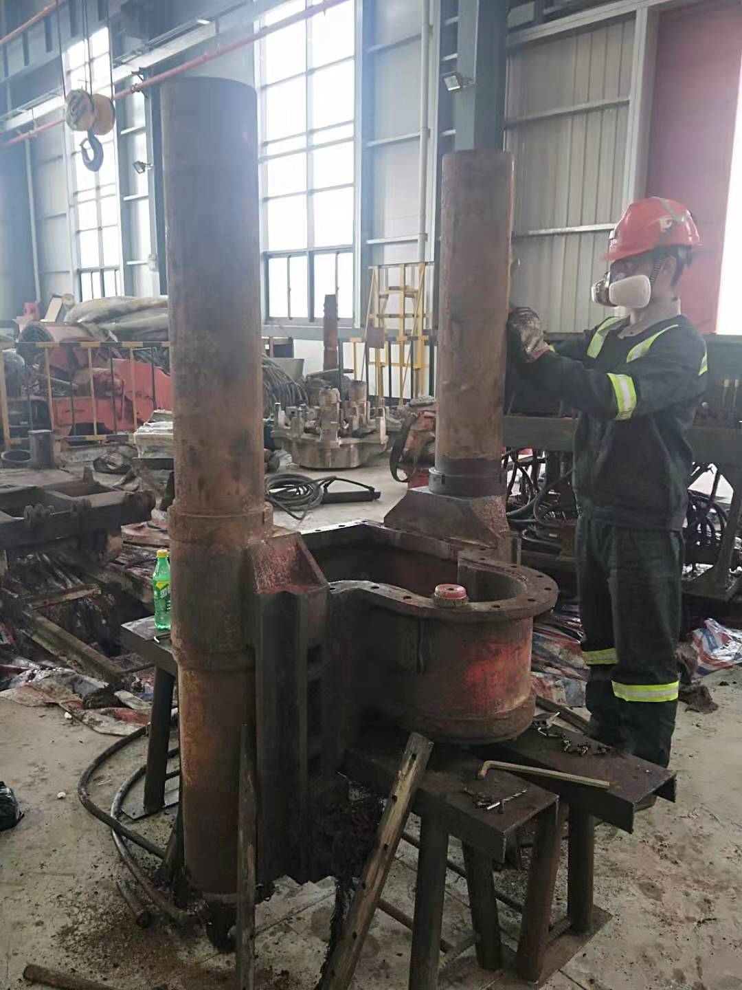 反井项目部AK008反井钻机,型号为ZFY-1.2/30/150,先后作为武钢、大红山、锡铁山、沂南、长龙山等机台的施工钻机,累计进尺3000m有余。在“劳苦功高”的同时,也伴随着设备的日渐消耗。近期,AK008钻机在长龙山项目施工完后,经设备检查发现钻机存在以下问题:水系统严重损坏;齿轮箱承载轴承、扶正轴承间隙大,无法正常运行;主机衬板磨损严重,无法保障导孔精度;钻机主件锈蚀严重;油封老化;下卡座破损,再加上钻机在沂南项目解体下井,现场条件限制导致组装时机架不规整,设备状况整体较差等。