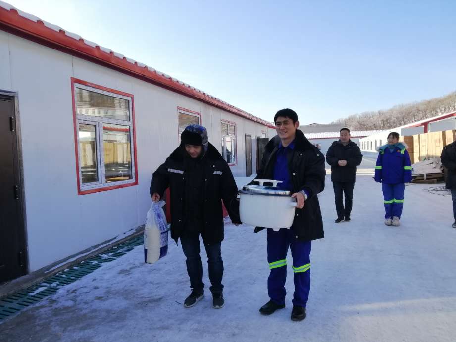12月25日,北风凛冽、寒气袭人,但东安金矿项目部生活区却喜乐融融、鞭炮齐鸣,这是东安金矿项目部全体员工乔迁新居大喜的日子。从这天起,所有员工告别了狭小拥挤寒冷的住房,搬进了宽敞明亮温暖的新生活区。