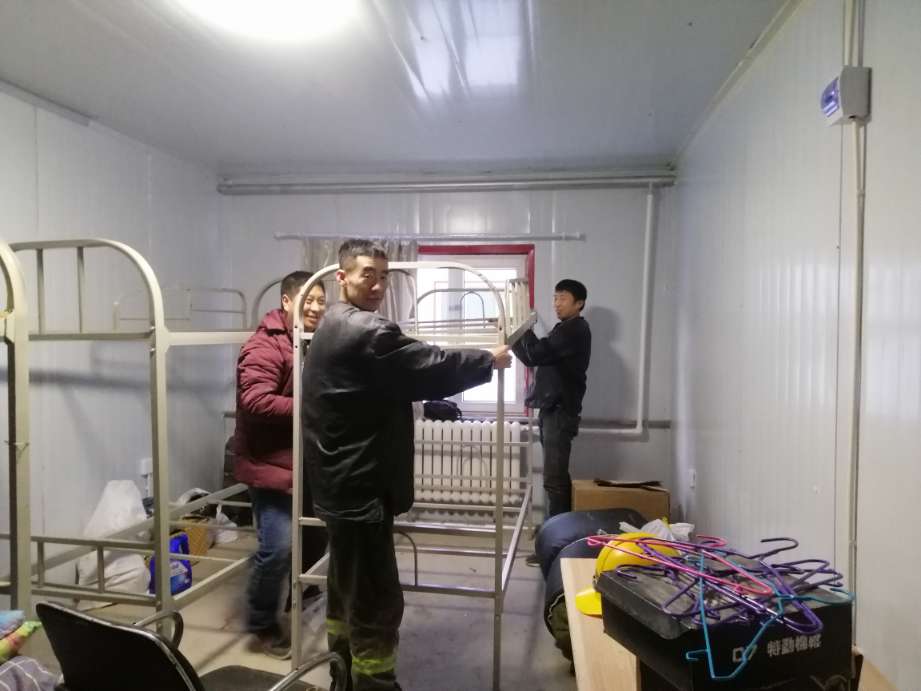 东安金矿项目部位于黑龙江省东北端,气候寒冷。项目部成立后,员工只能拥挤地居住在业主方提供的少量宿舍中。而办公去、食堂等均在原来的库房,不仅简陋,而且冬天十分寒冷。在两级公司的关怀支持下,项目部从今年起规划进行功能齐全的大临建设,新的办公住宿用房于近日顺利竣工。
