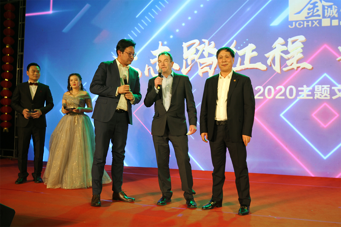 交割仪式结束后,受王先成董事长的盛情邀请,Eric Finlayson先生一行兴致勃勃地出席了公司举行的新年晚会,并热情送上他们对金诚信员工的祝福。
