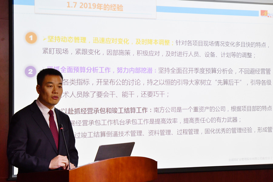 围绕面临的形势,王成洲总经理提出了“一个深化、两个持续提升和三个加强”的2020年工作思路,主要是进一步深化改革创新,精简机构人员,提升执行能力;持续提升安全生产动态管理和设备运行保障能力;持续提升标准化建设和推进矿业4.0工作落地;加强全面预算过程管控,加强经营承包和工程结算,加强企业文化和“三支队伍”建设。