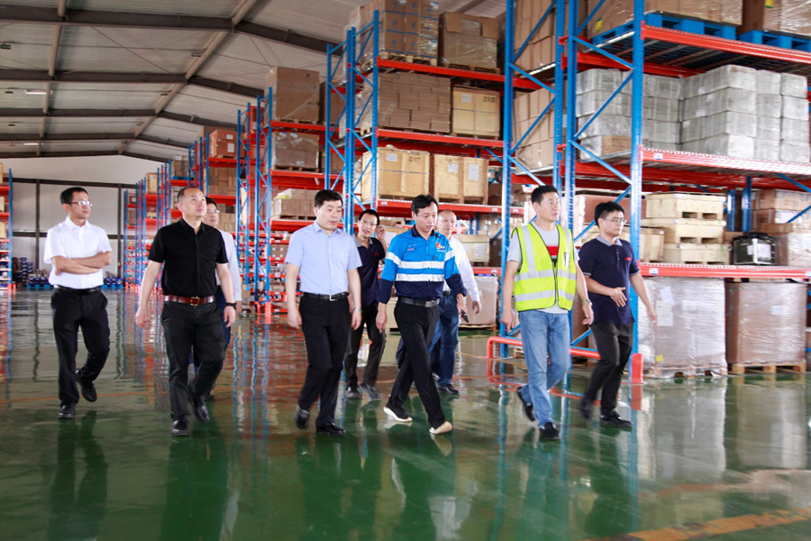 随后,董总一行来到中心库房了解了相关情况。在库房参观期间,财务总监咬立鹏就物资年采购量、库存量、种类及年消耗情况向董总做了简单介绍。董总对中心库的库容、库貌及精细管理赞赏有加。