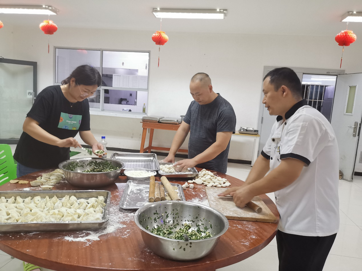 为了更好地让大家体验农历春节的浓浓年味儿,辛苦的后勤厨师们也早早开始忙碌,提前准备大家的年夜饭——“饺子”。比起一线员工的辛苦,在后勤工作的厨师们更是起早贪黑,不计昼夜地默默付出着:早上五点之前要把早餐准备好,晚上十点还守在食堂,等待夜班晚归的同事们。只为能及时地让辛苦忙碌了一天的同事,回到驻地能吃上热饭喝上热水。