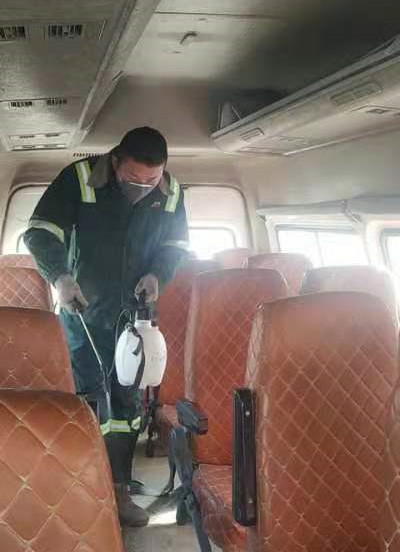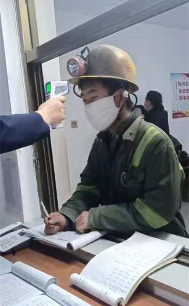 为确保员工生活生产的秩序正常,项目部要求所有在岗员工排班会、调度室签到、候车、乘坐通勤车或服务车,必须佩戴口罩。所有人员到调度室签到时由当班调度负责测量体温并记录,如有异常禁止下井并立即上报。综合办公室安排专人负责对食堂、浴室、宿舍、卫生间、更衣室、办公区域等公共区域及进行全方位保洁消毒和通风换气工作,特别要求食堂每天至少两次消毒,同时安排人员负责井下的食堂操作间、值班室的每日消毒工作。