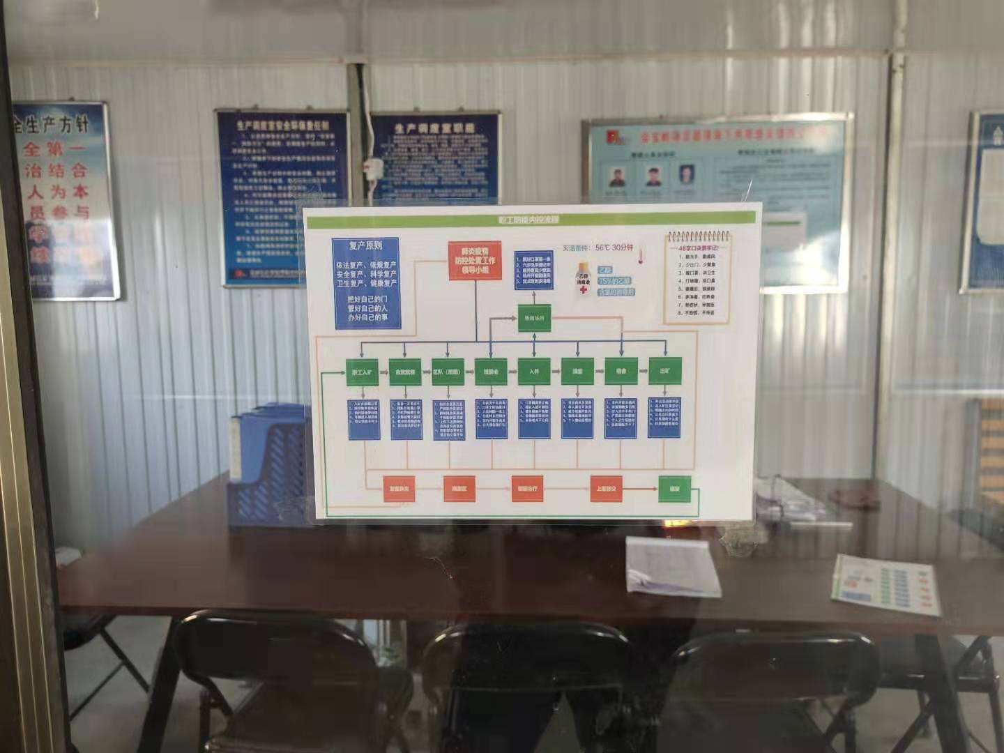 会宝岭项目部目前在岗人员有百余人,防控疫情的任务十分艰巨。为切实保障员工的健康和项目部生活秩序稳定,项目部成立了以翟武弟经理为组长的疫情防控工作领导小子,严格按照两级公司和业主方、地方政府的要求,推出了防控疫情的一系列措施: