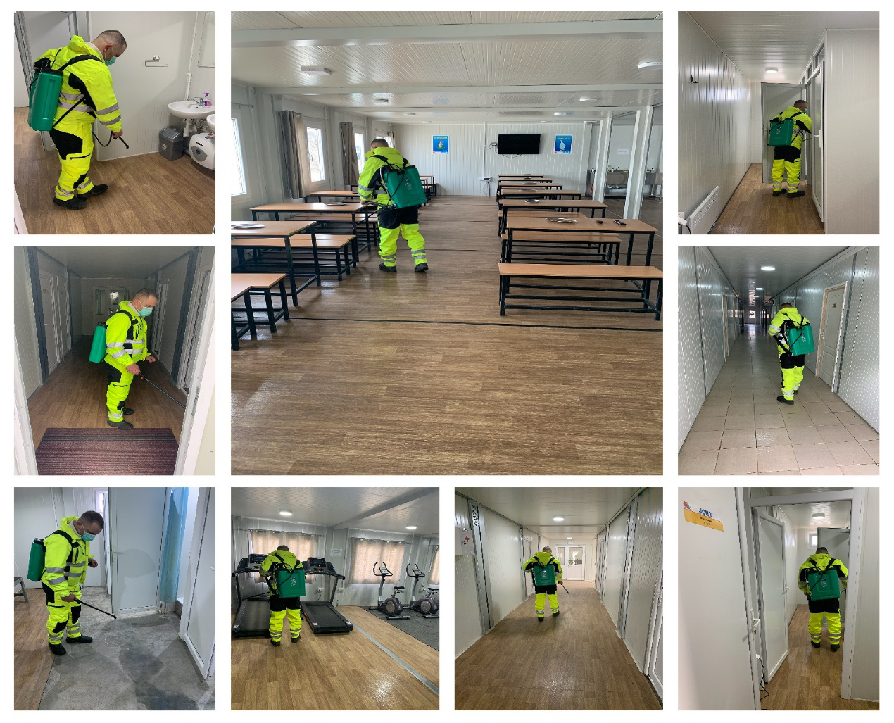 普朗项目部根据两级公司和地方政府、业主方要求,结合自身实际制定了“关于预防新型冠状病毒肺炎的措施”,要求消毒工作到每一台设备上,目标是绝不让新肺病菌“染指”美丽的香格里拉;身处海拔4100米高原的白玉项目部,春节期间留守员工达200多人,本就严重缺氧的冬季,如今休息时间还要戴上口罩,令不少员工感到“憋闷”。可项目部管理层严格要求,随时检查,目的是不放过任何一个死角;西北大戈壁深处的肃北项目部有如“孤岛”,距离最近的镇上也有70多公里。为了筹集基本的口罩、消毒液等防疫物资,他们派出几路人马采购,同时在业主方支持下很快配齐并投入使用,不给病菌任何“可趁之机”……
