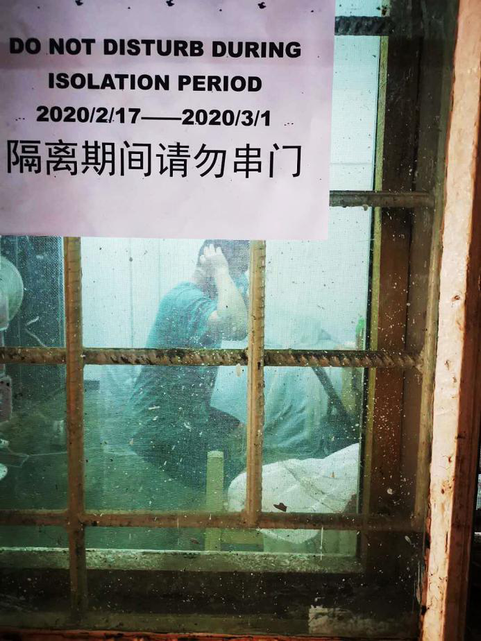 从2月14日开始,陆续有在国内休假中方员工返赞,到赞后严格执行14天居家隔离制度。综合办提前将隔离房间进行全面消毒,并为每位返赞同事准备了消毒水、酒精、口罩、体温计等用品。隔离期间严禁隔离区员工与其它员工接触,每天两次检测体温并做好记录待查,每天汇报健康状况,保证实时掌握所有员工的健康情况,防患于未然。
