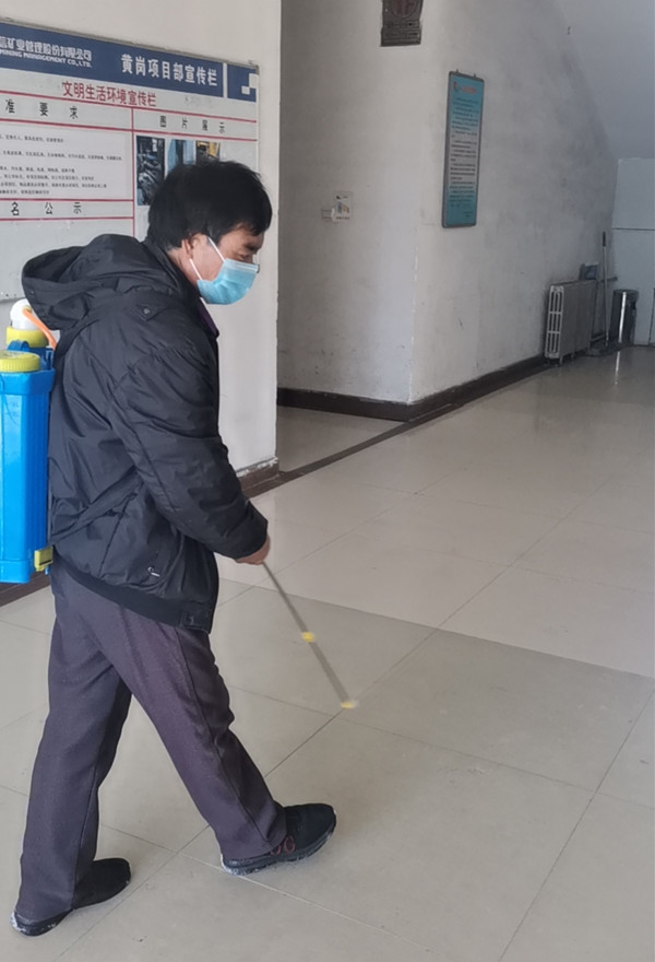 春节放假期间,项目部仅安排了5名员工轮休值班。正月初二又接到业主方黄岗矿业公司的通知:即日起禁止所有人员上下山。项目部不得不对轮休值班计划进行调整,由留守项目部的5人一值到底,不再进行人员替换。值班人员每天的工作内容也有所变化,在巡视厂区、地表、井下巡查之外,又增加了每天定点测量体温、每天定时消毒等工作。