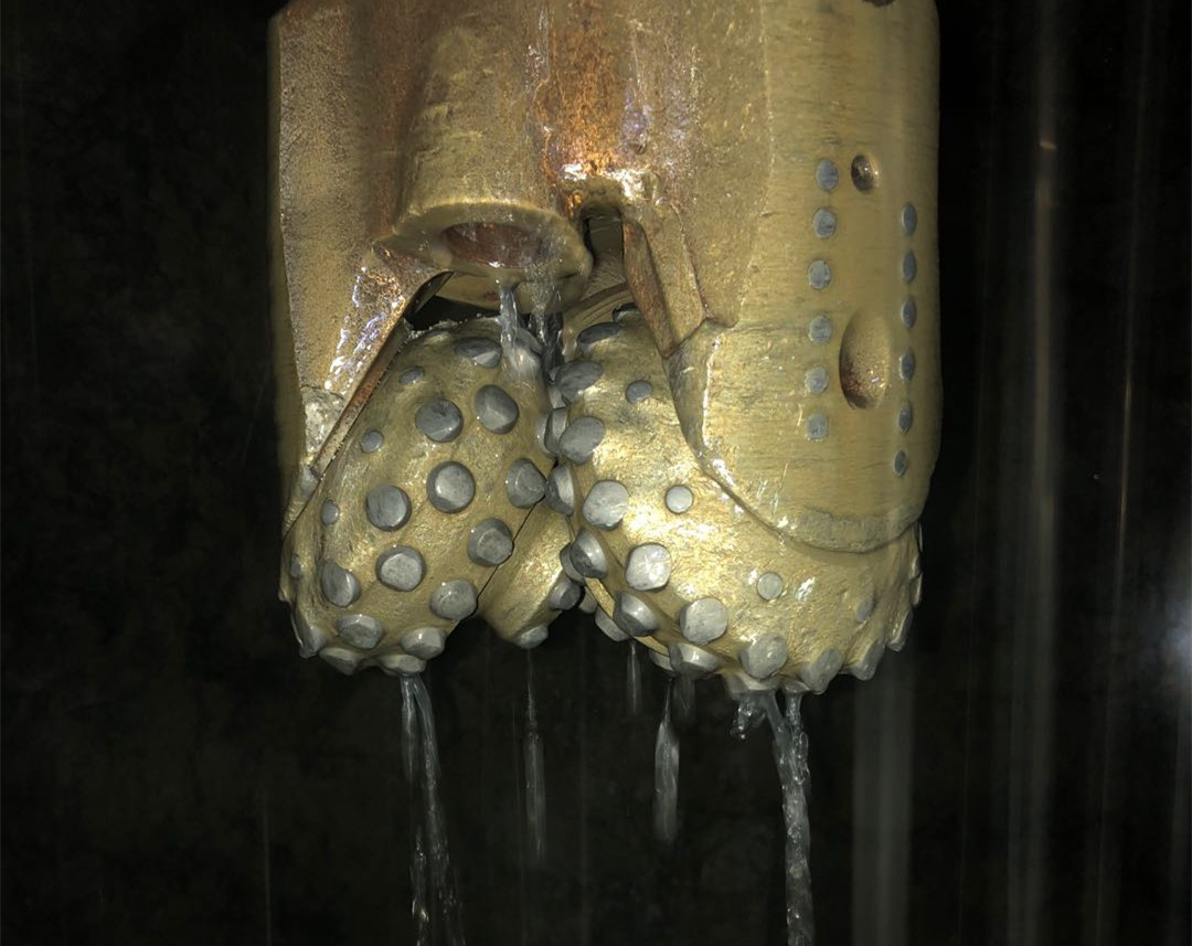 5月25日,班组人员将设备转运至185m水平采区切割井,进行了第三条井施工。该条井井深40m,孔径1.4m,位于花钢岩及矿石带,施工时钻头偏向较软矿层,初期导致了导孔稍微偏斜。经验丰富的施工班组长及时调整设备,迅速改变施工方式进行纠偏,最终用5天时间完成了导孔施工,于5月31日完成扩孔贯通。