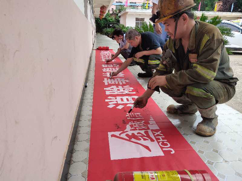最后,项目部组织全员宣誓并在“安全生产月”主题横幅上签名承诺,各项活动在大家热情高涨的气氛中中正式拉开序幕。(徐济真)