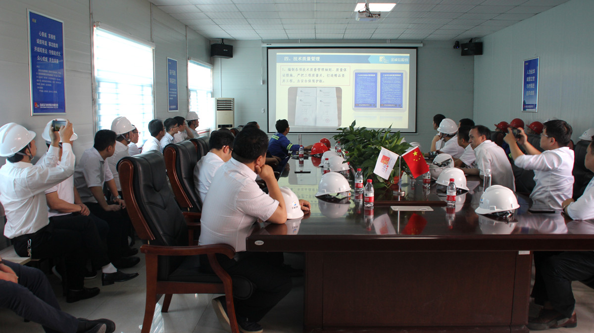 随后,参观组领导在项目部会议室与项目部领导进行了座谈交流。项目经理杨永军向参观组详细汇报了汇金项目部概况、建设过程、各专业管理创新措施以及一年来取得的成绩等。参观组的各位领导就安全施工管理等话题进行了详细交流。