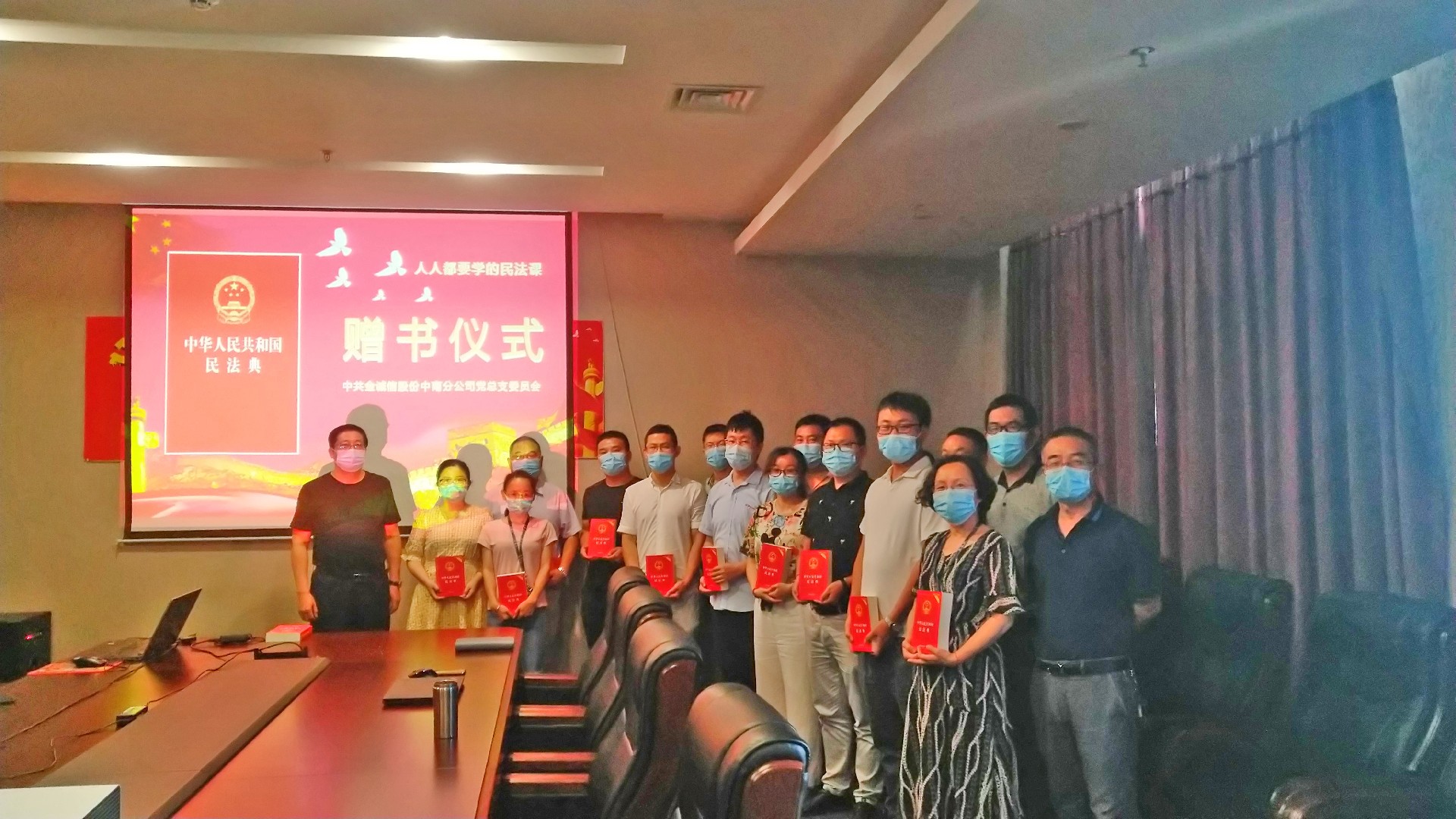 为加强中南分公司全体员工的法律意识,引导大家做一个知法、懂法、守法、用法的好员工、好公民,中南分公司党总支购置了一批《民法典》工具书,于7月22日主题党日活动举行了赠书仪式,由总支委员把《民法典》郑重地奋发到分公司机关的每一个党员、部室负责人手里。
