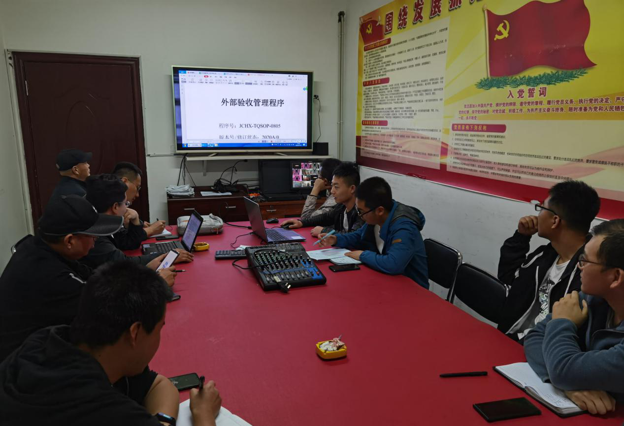 随后,由地质主管申海平给大家讲解外部验收管理程序。在讲到“质量工程师(质量检查员)检验批(含隐蔽),分项工程检验批(含隐蔽记录),分项工程报验单”这一流程时,大家提出了许多问题,宋肖杰经理一一为大家解答疑惑道。经过理论和举例说明,加深了大家对检验批和分项工程的认识。