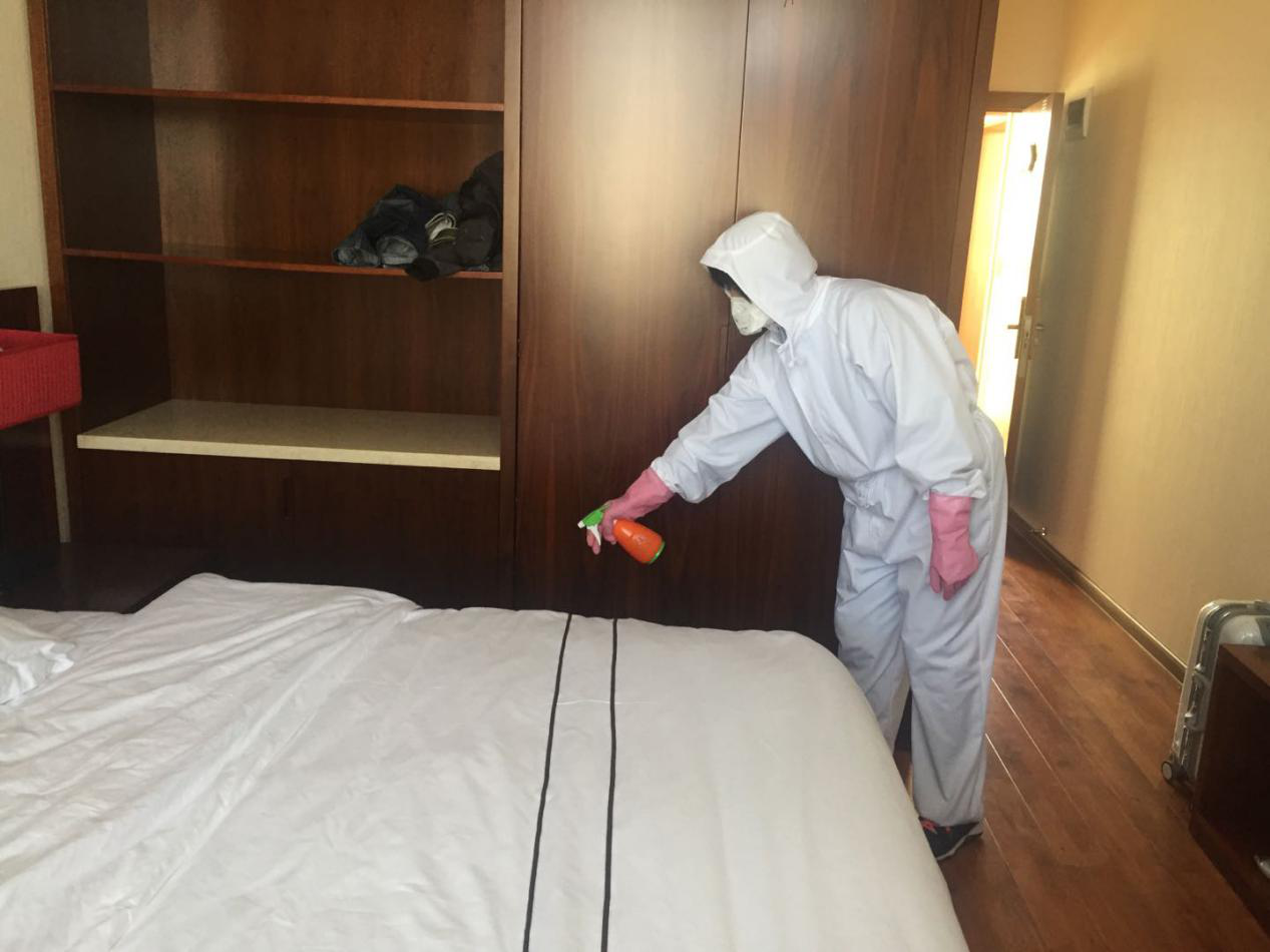 五、注重房间卫生管理。安排了服务员打扫卫生,包括公共区域、个人房间。每天打扫人员在清理完地面后,再用酒精和84消毒液进行消毒。房间死角、卫生间也不能放过,开窗通风保持室内空气清新。