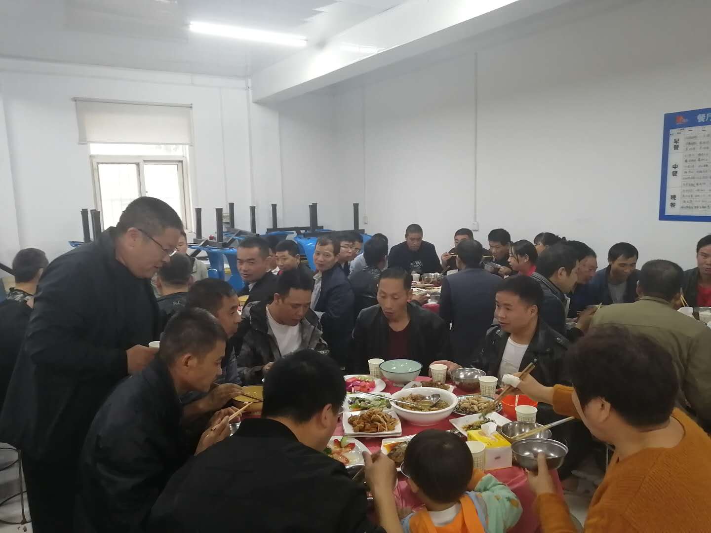 下午四时,项目部的聚餐即将开始,食堂餐厅人头攒动,热闹非凡,大家都坐好等待开席。聚餐活动在项目经理陈永在的热情洋溢的祝福话语中开始。在热烈的气氛中,食堂人员及家属努力了一上午的成果,就这样一盘盘地端到饭桌上。大家看到精致又美味的饭菜,感受着热烈的气氛,一个大家庭的感觉油然而起。