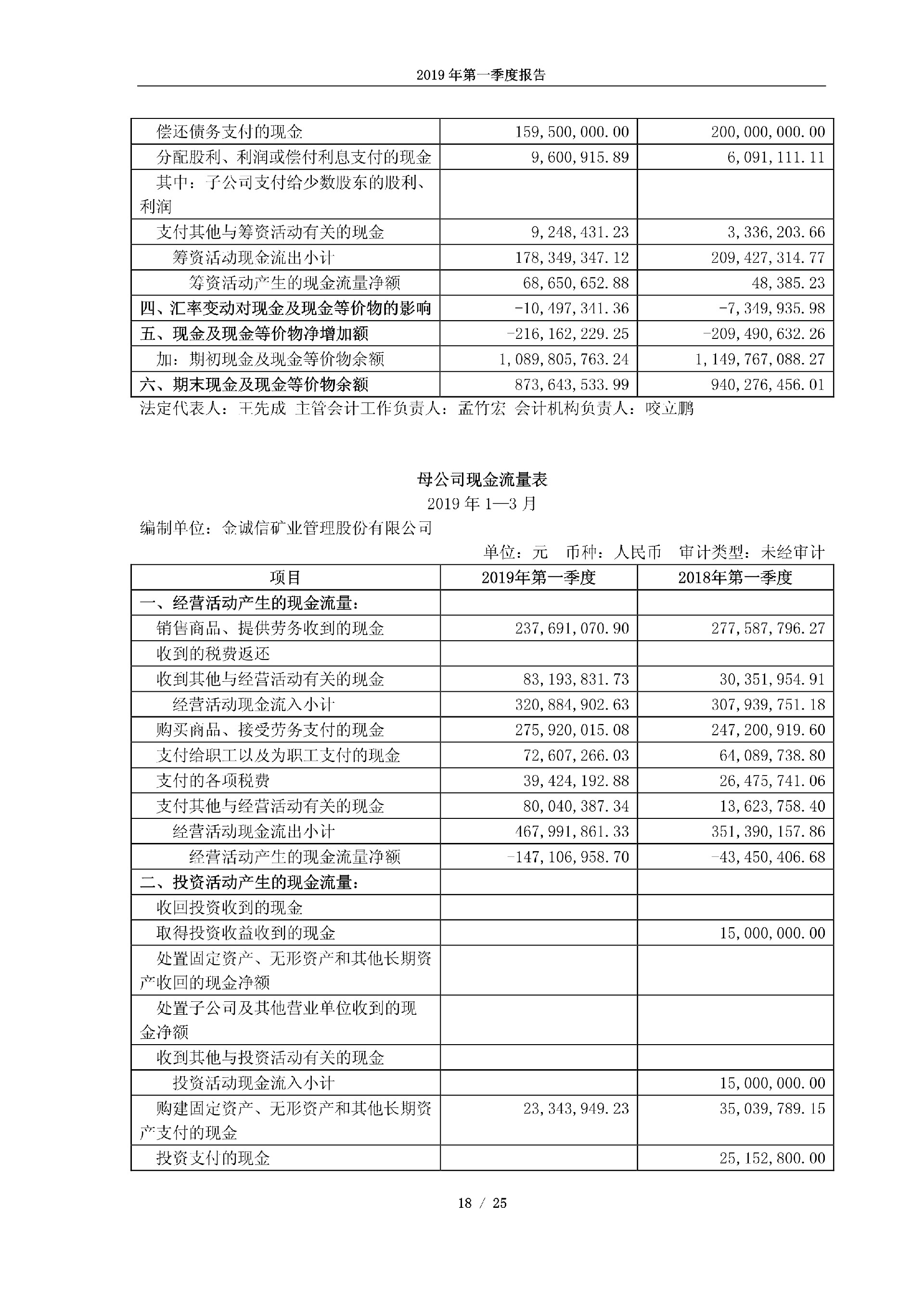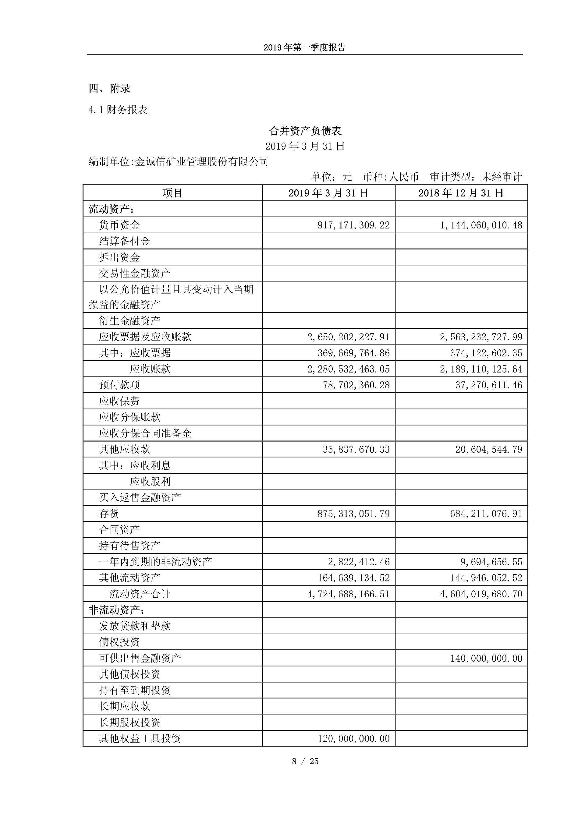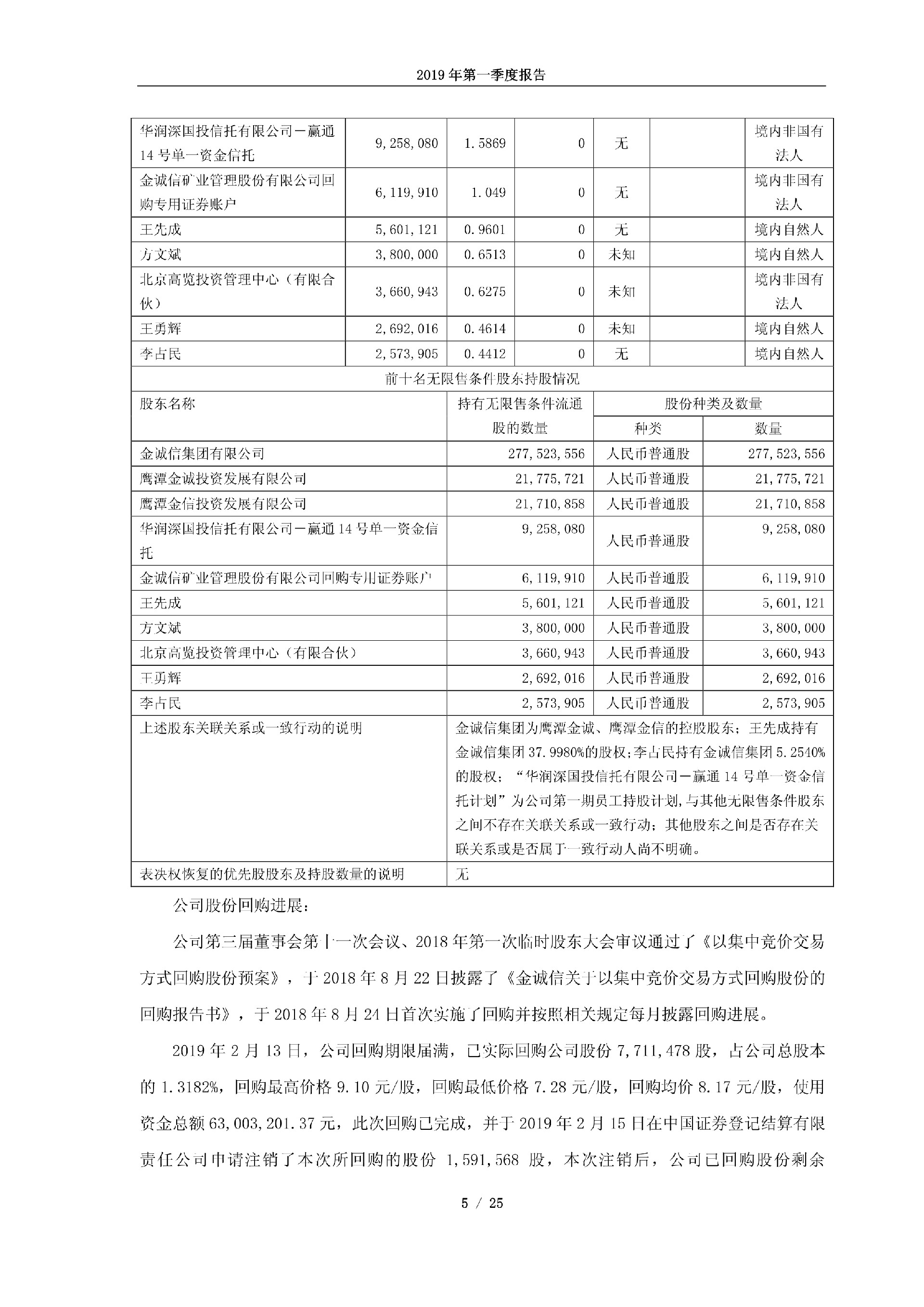 金诚信2019年第一季度报告
