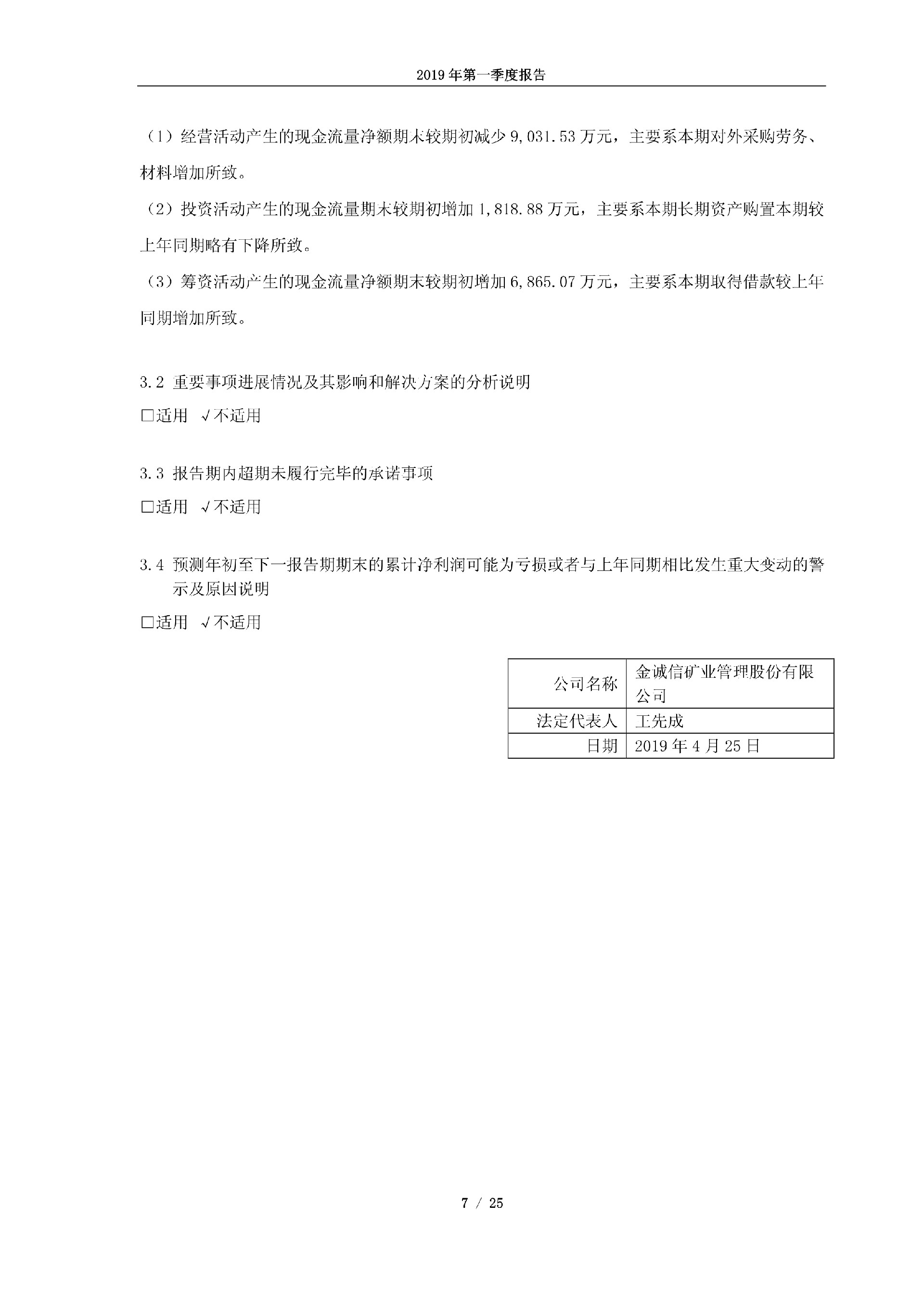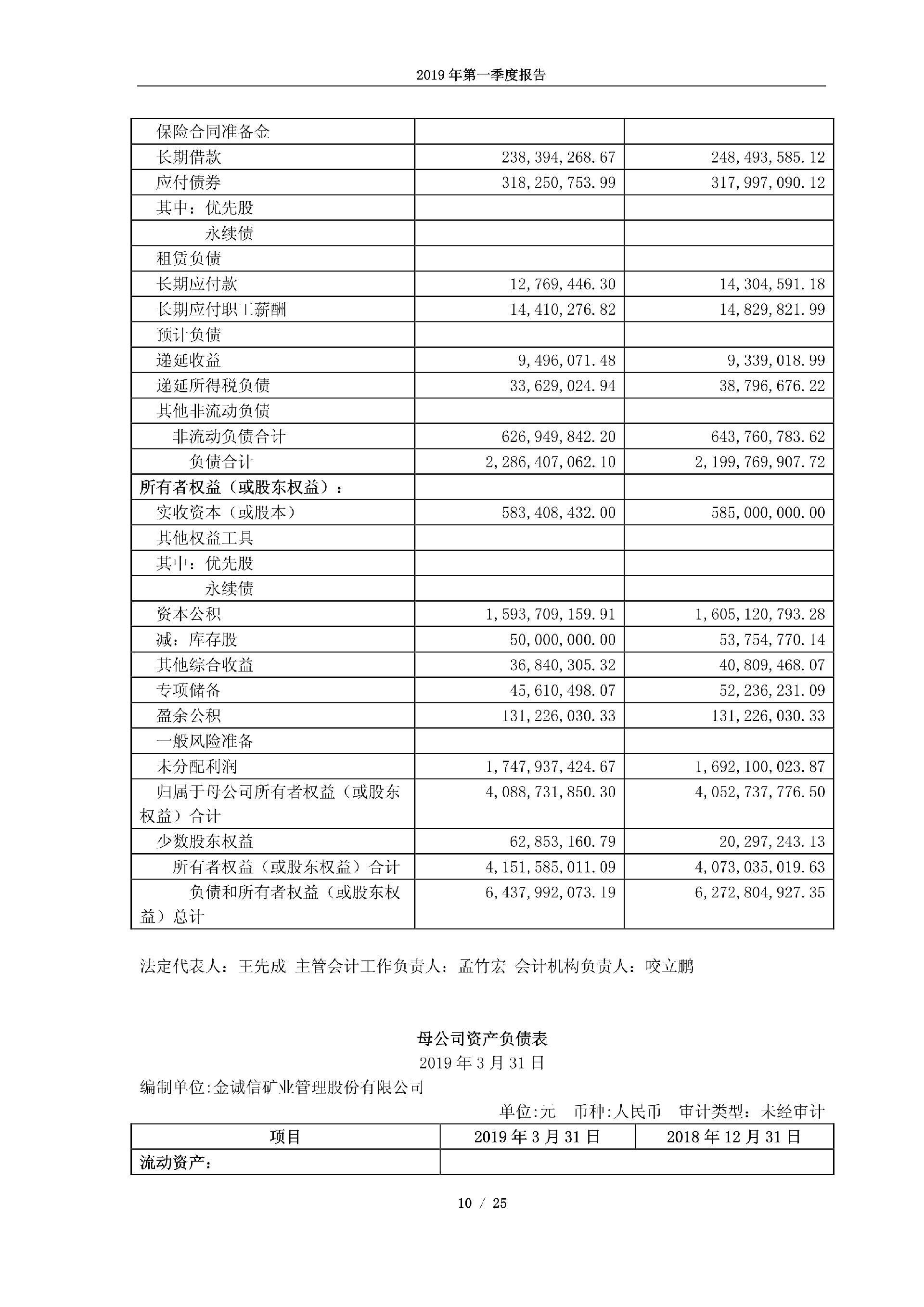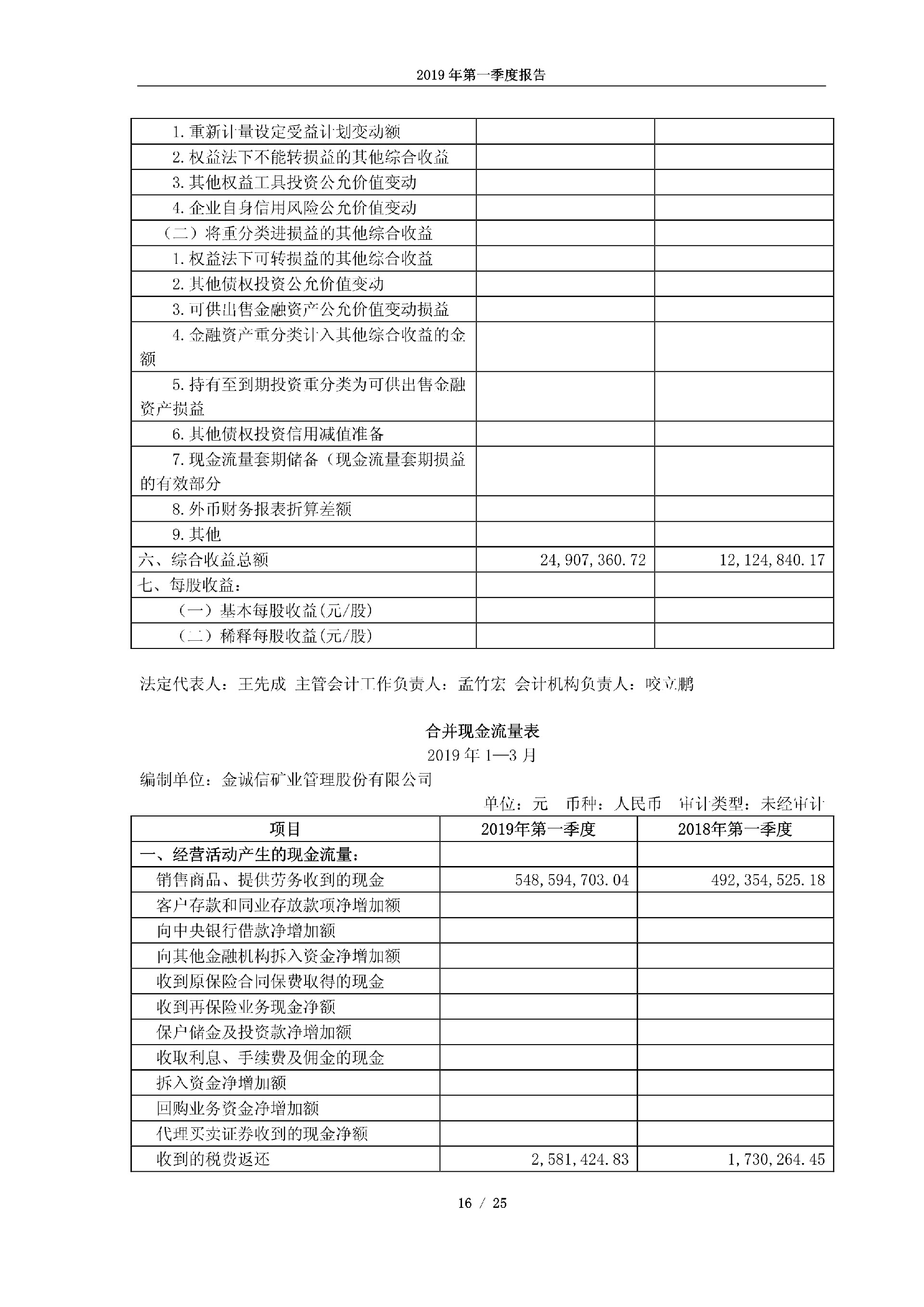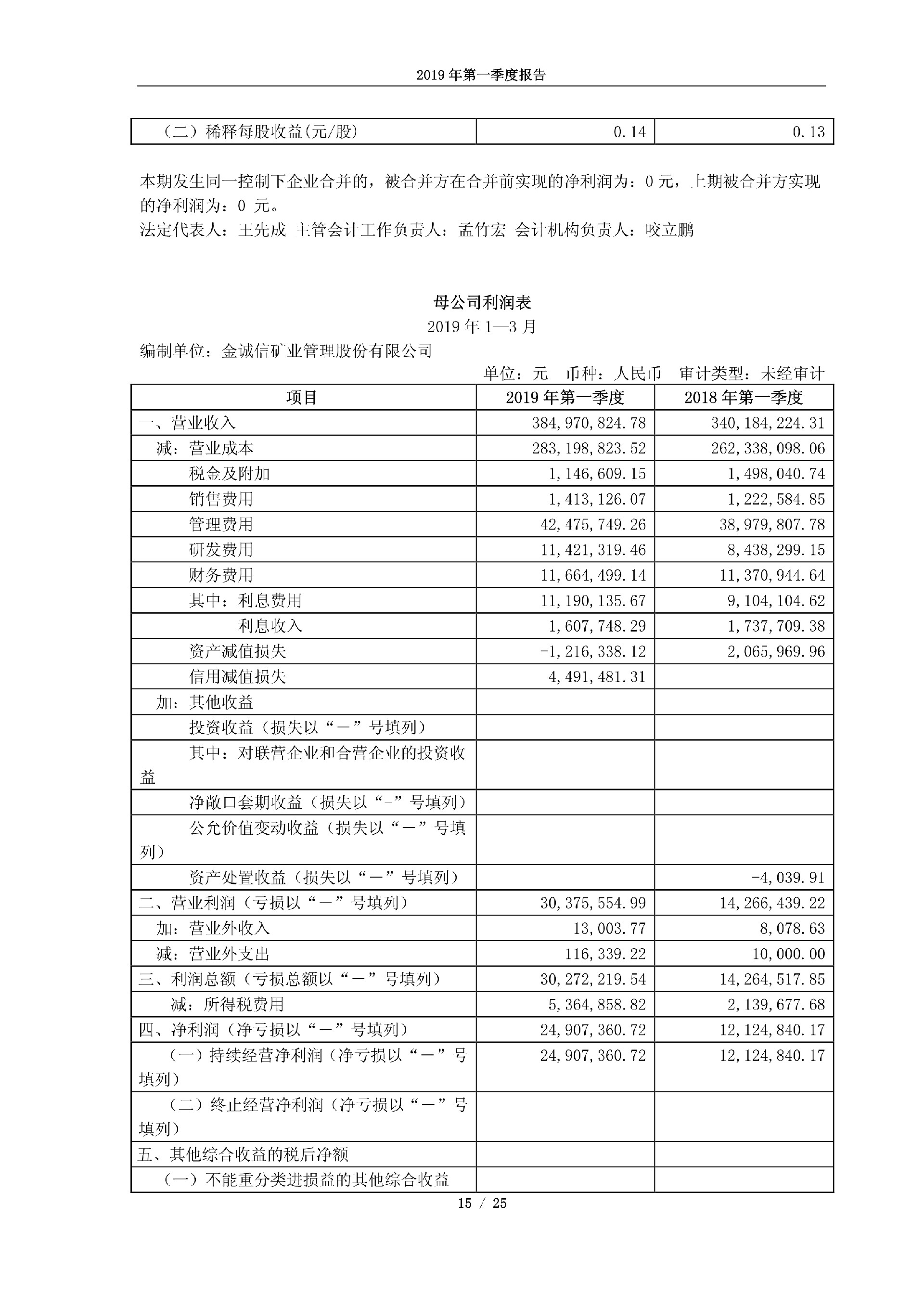 金诚信2019年第一季度报告