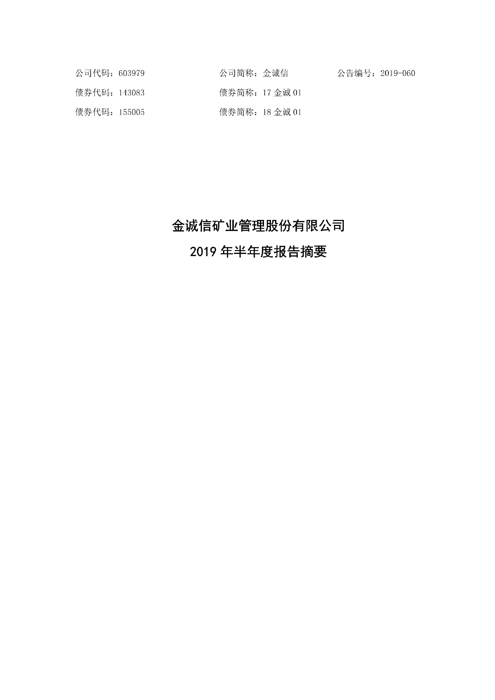 金诚信2019年半年度报告摘要