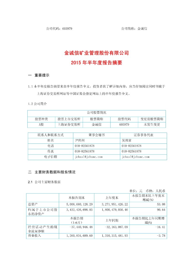 金诚信半年报摘要